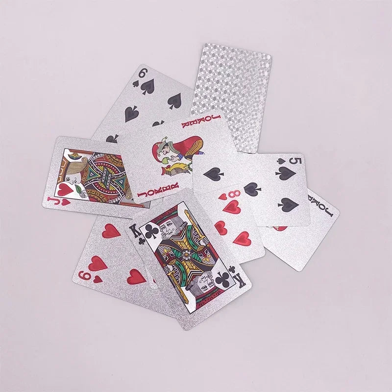 • Design Elegante: Com um acabamento dourado e prateado brilhante, este baralho oferece um visual sofisticado e moderno, destacando-se em qualquer ambiente de jogo.