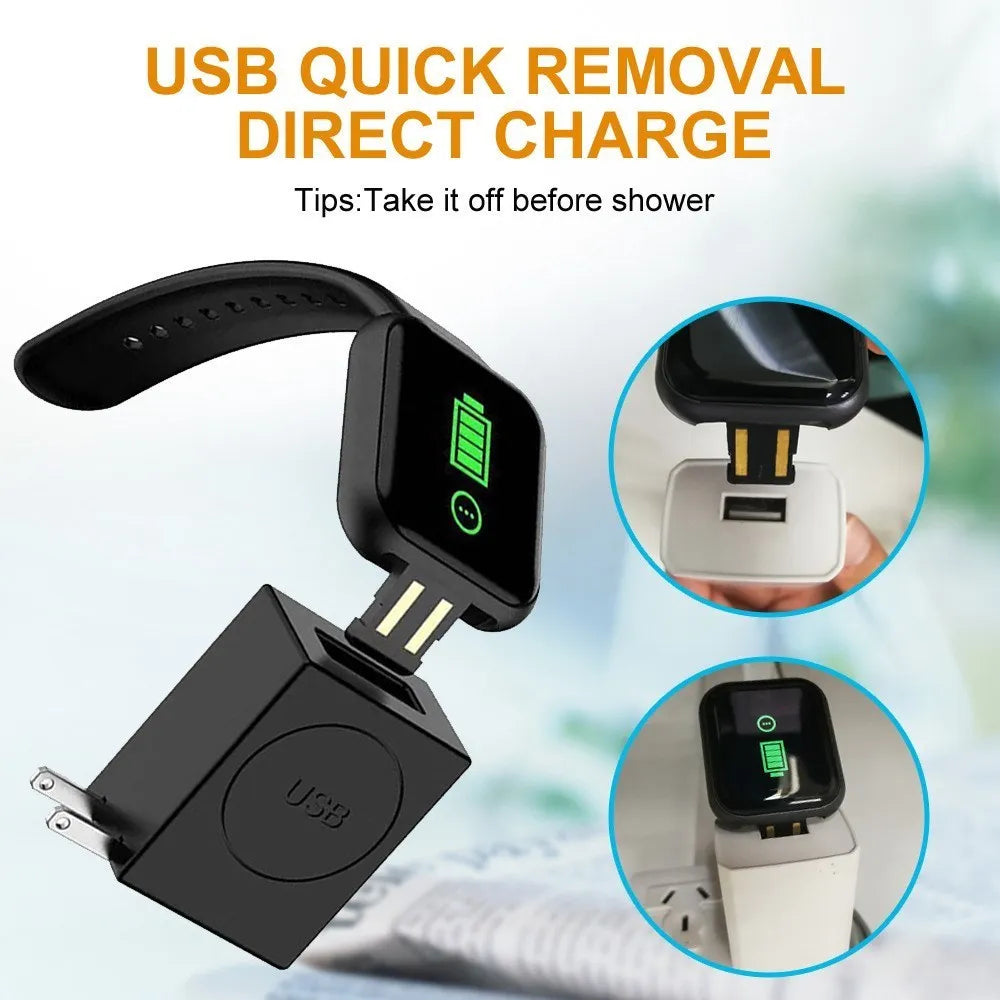 • Tela e Conforto: Equipado com uma tela de 1.44 polegadas e resolução de 240 x 240, oferece uma visualização clara e detalhada. A pulseira de gel de sílica é confortável e ajustável para um ajuste perfeito.
